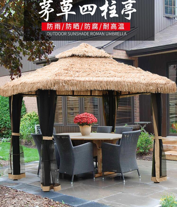 庭の屋外の茅の日よけのテントの防雨四柱の凉亭の観光地区の露店の日よけの中の柱の屋外の傘