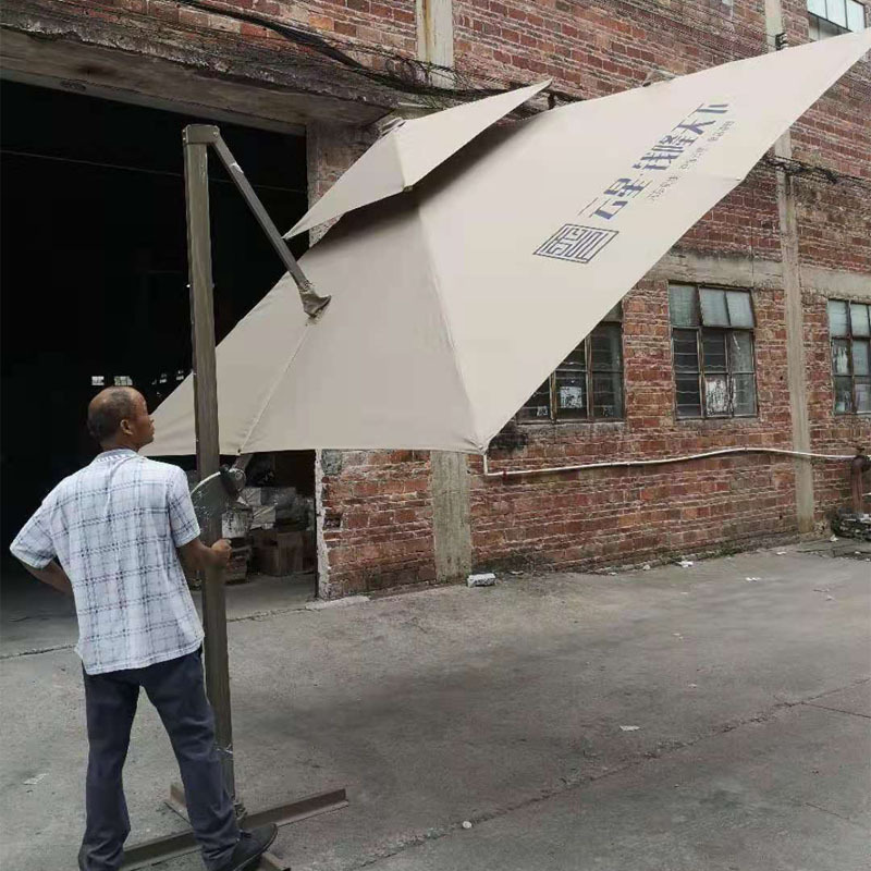 カスタム豪華304ステンレスサイド傘角型7字傘日字石座傘布はロゴを印刷できる