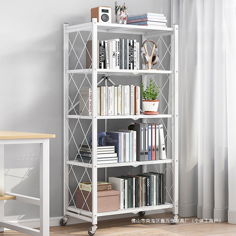 設置不要の折りたたみ本棚収納ラック床置き鉄製可動棚リビングルーム収納シンプルなスチール本棚鉄