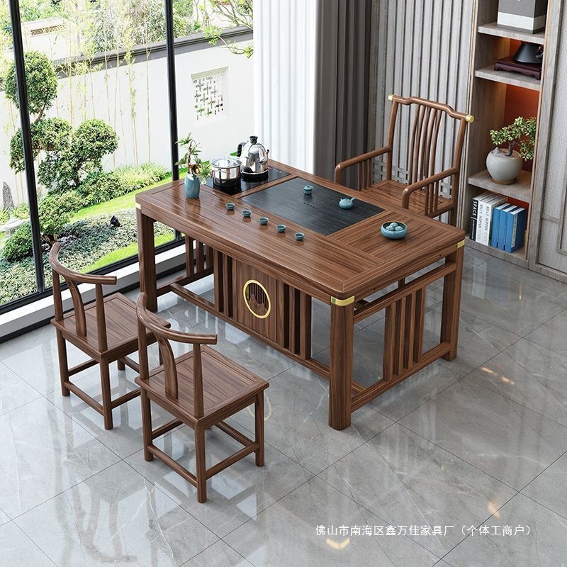 新しい中国風のバルコニーティーテーブルと椅子の組み合わせ無垢材ティーテーブル小さなアパートのティーテーブル一体型禅カンフーティーテーブルセット