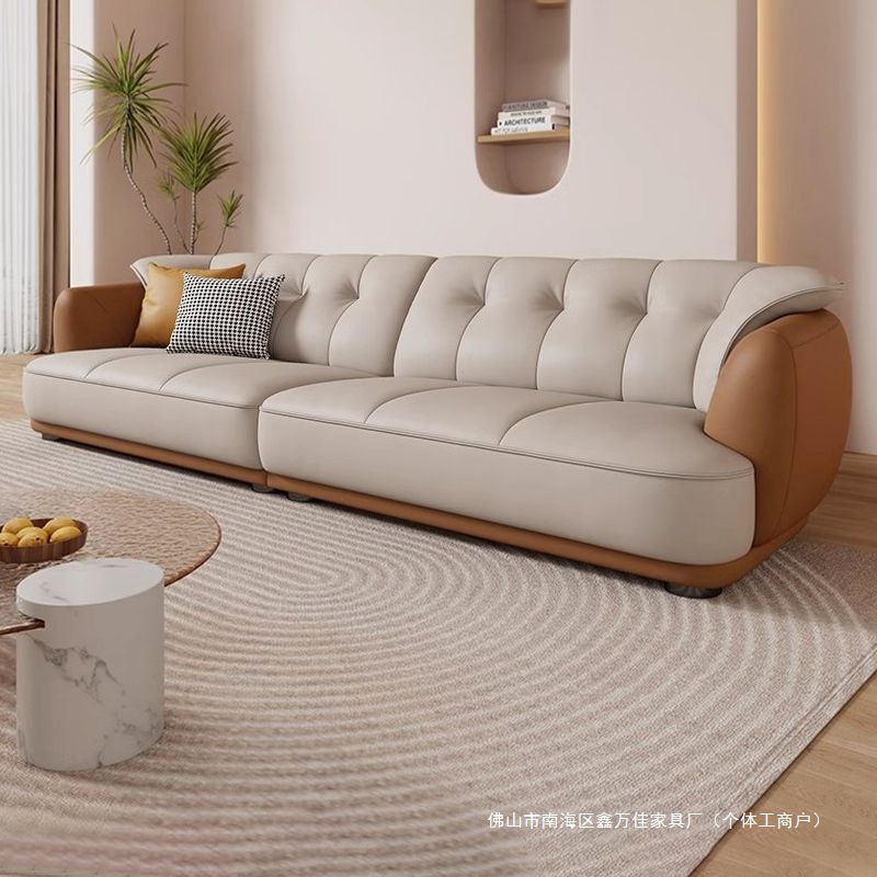 北欧シンプルモダンリビングルーム小さなアパート3人用クリームスタイルストレート2024新しいレザーアートソファ湾曲