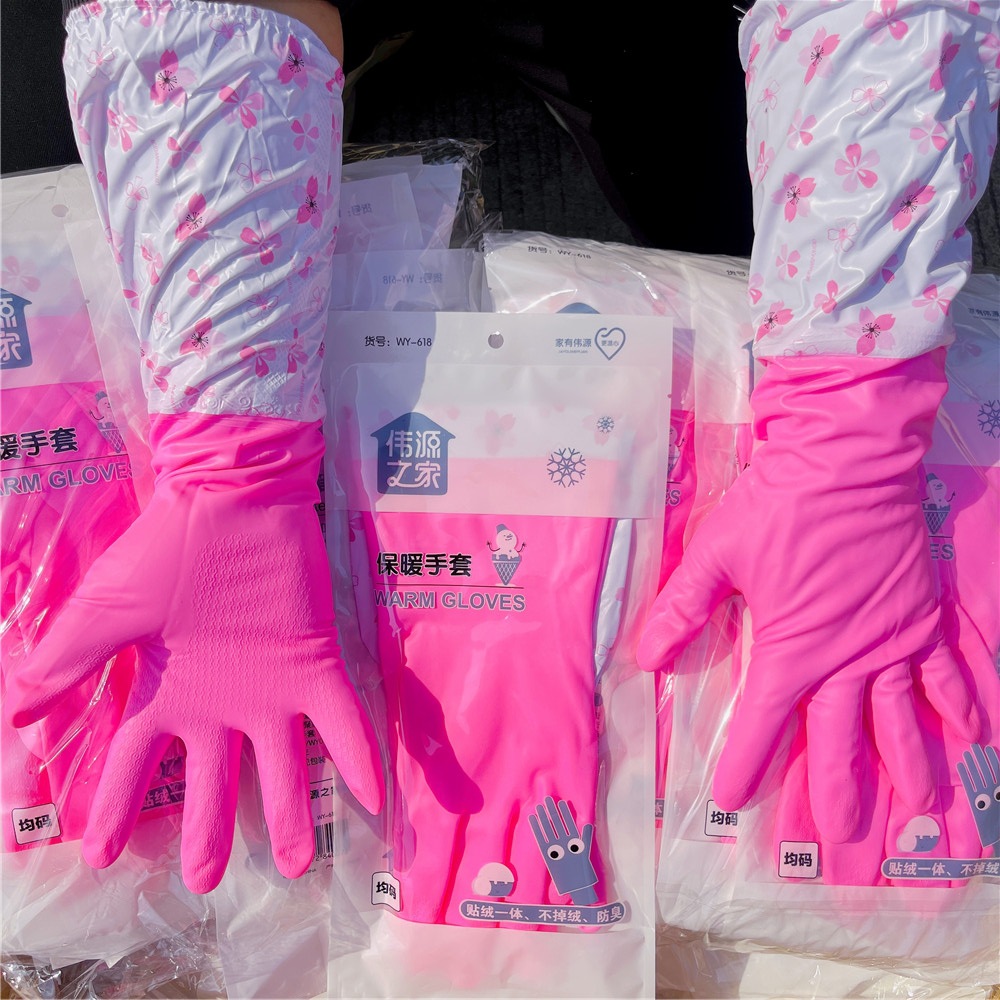 一体绒洗碗手套保暖加厚绒布防油不伤手耐用冬季洗衣服防滑防水手