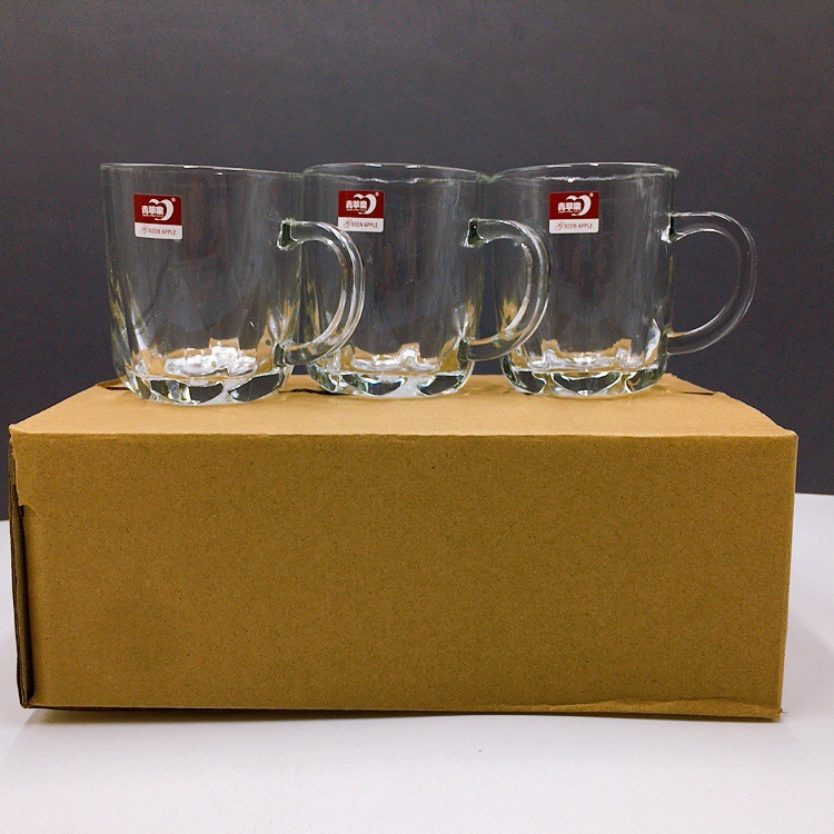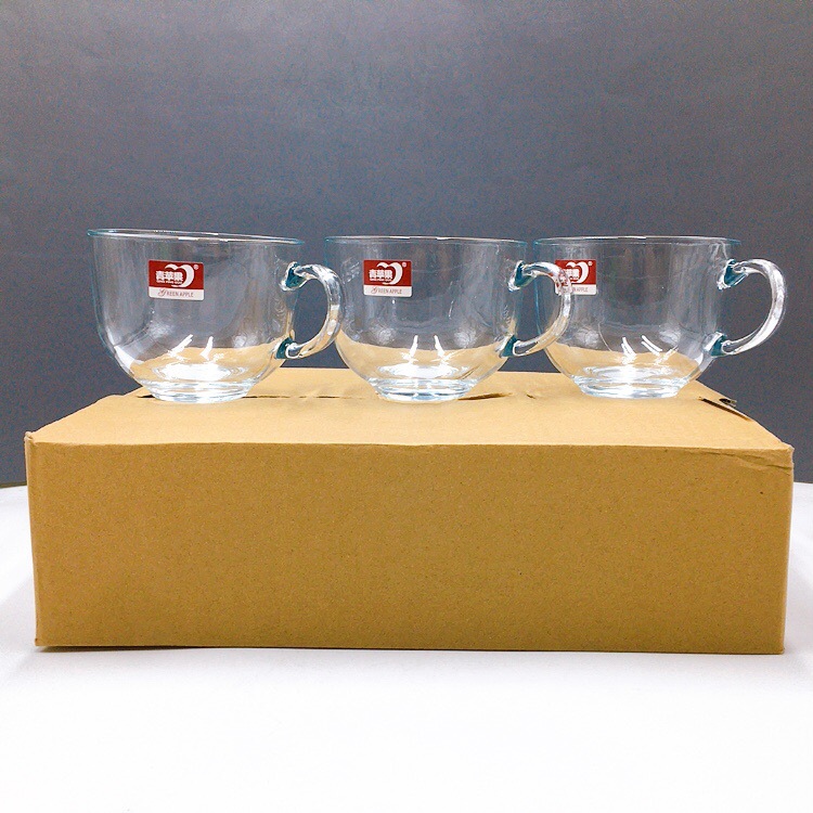 玻璃茶310ml杯加厚透明泡茶圆杯耐热带把花茶杯玻璃ZB33-1A