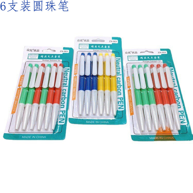 古典的な押し6本入りボールペン広告プロモーションギフトペン簡易プラスチックオイルペン現物卸売りペン