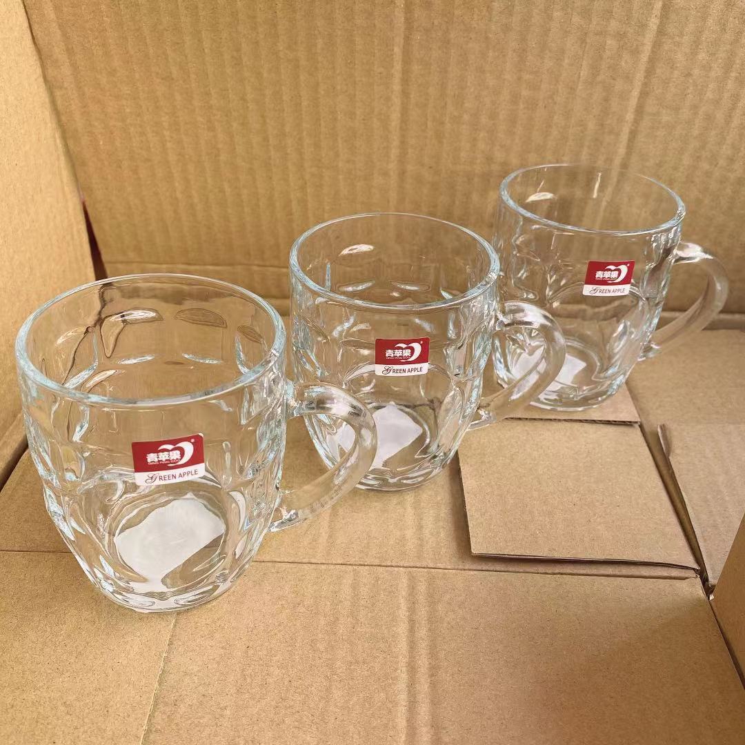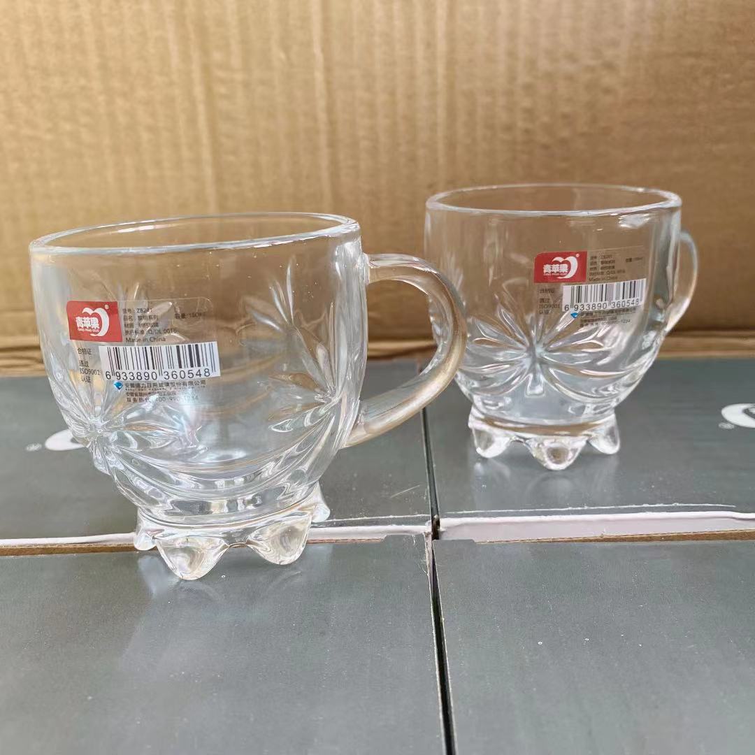 青苹果六角圆形杯透明玻璃带把玻璃茶杯加厚两元百货两元店批发
