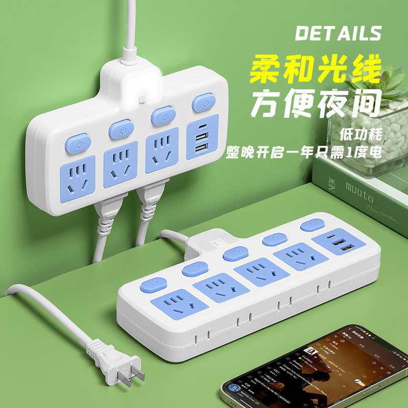 コンセントにはランプ付きの小夜灯があります。アクリルランプには3usb配線板付きの黒い多孔多機能ケーブル板があります。