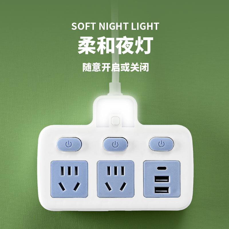 儒雅コンセント変換器多差込器小夜灯多機能家庭用USBサイドコンセント付き
