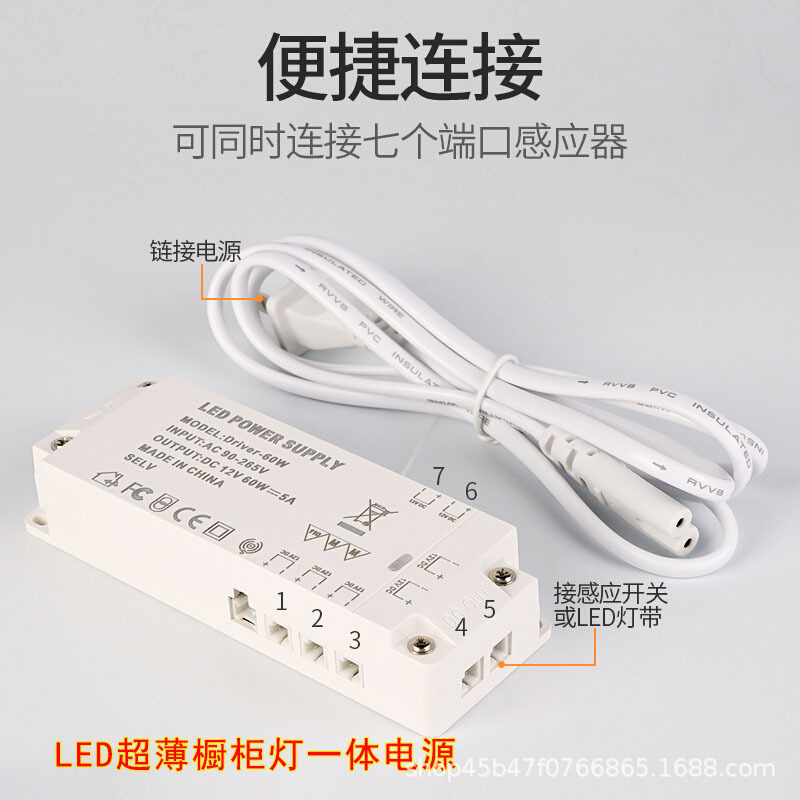 Ledキャビネットライト超薄型電源一体化24w36w60w6ビットデュポンインターフェース12vスイッチング電源