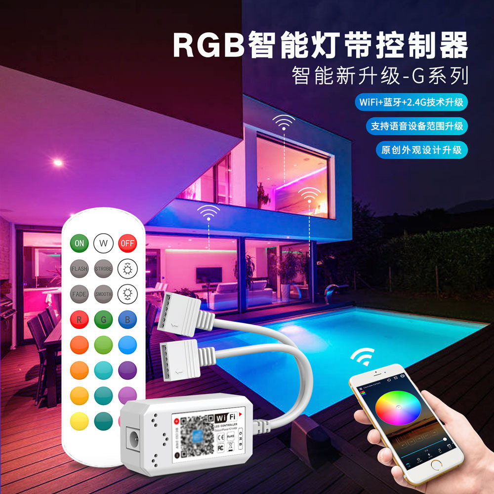 メーカー直供wifi bluetoothスマートコントローラ2.4g 24キーRGBライト調光変色ALexa音声