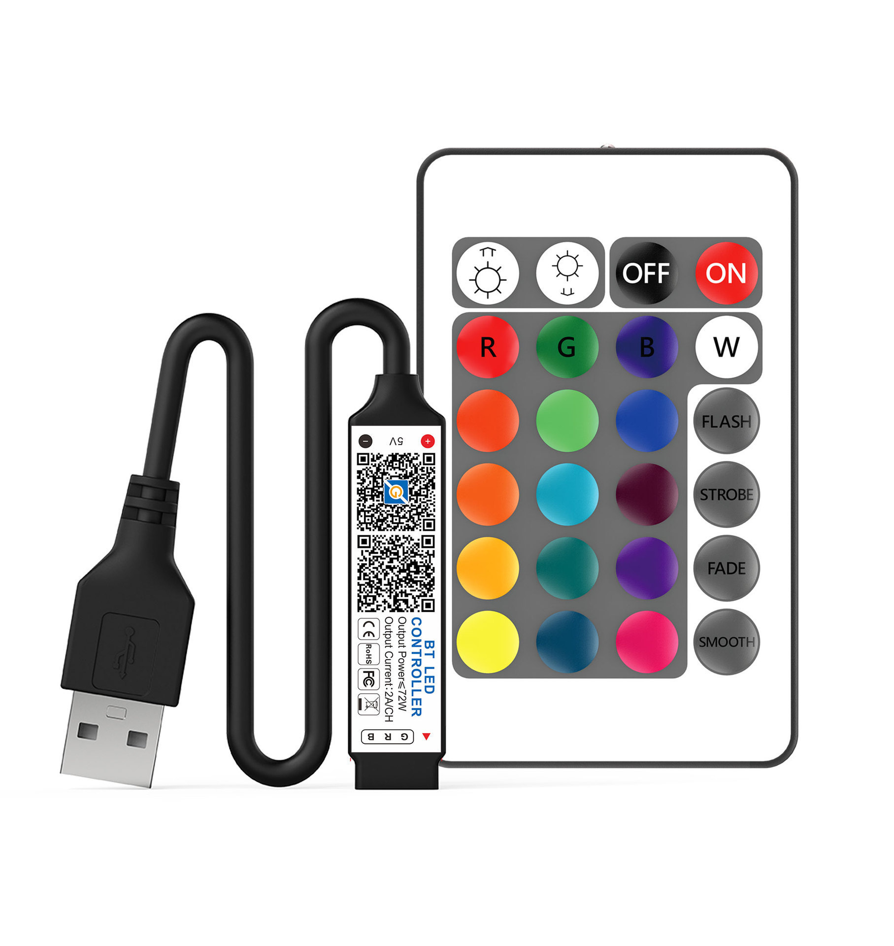 Bluetooth幻彩灯はコントローラapp制御、音声制御、音楽、走馬、単色流水、5-24v