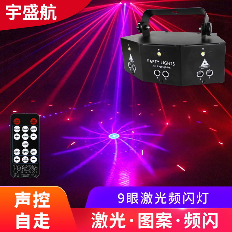 リモコン9穴レーザーライトスキャンビームライトktvフラッシュステージライトラジウムライト六眼赤緑青ledストロボ