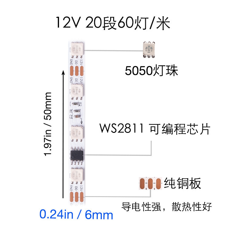 Led5050幻彩プログラマブルソフトストリップ一メートル30ランプ12v外付けic低圧gs1903rgbフルカラー