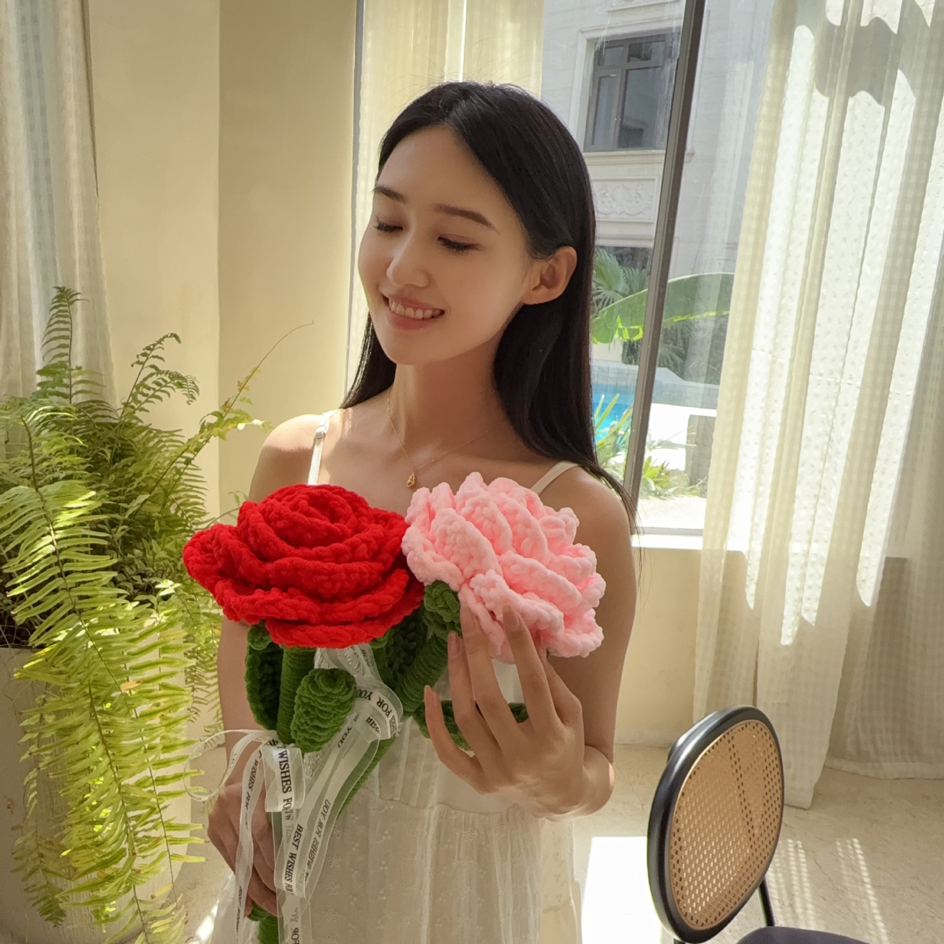中国のバレンタインデーのギフト、手作りのかぎ針編みのビッグマックローズ完成品、女の子の親友へのサプライズギフトとして