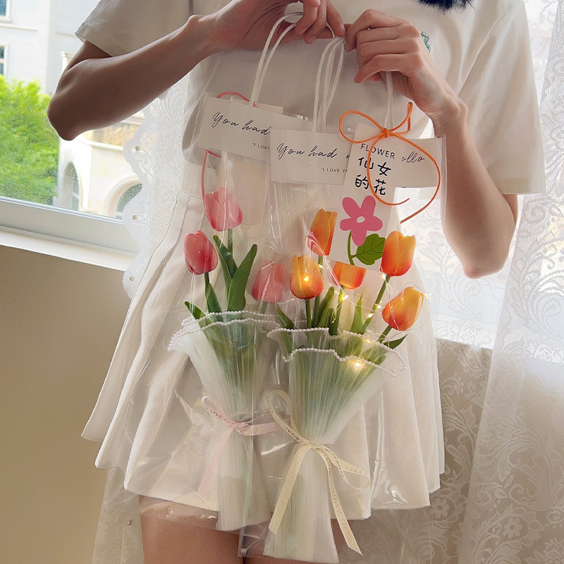 母の日のプレゼントのアイデアは花のチューリップの花束の完成品をシミュレーションして女の子の親友のお母さんのサプライズプレゼントの卸売りを送ります。