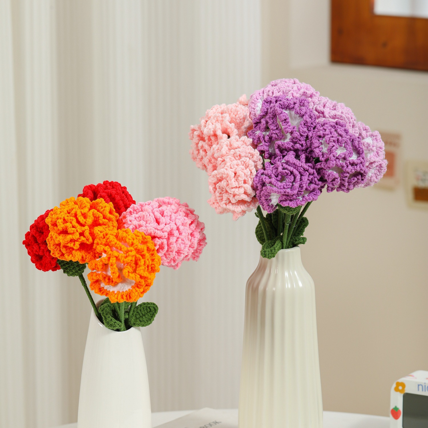 クロスボーダー完成品毛糸花純手編みカーネーション模造花毛糸ニット花束花芸置物プレゼント