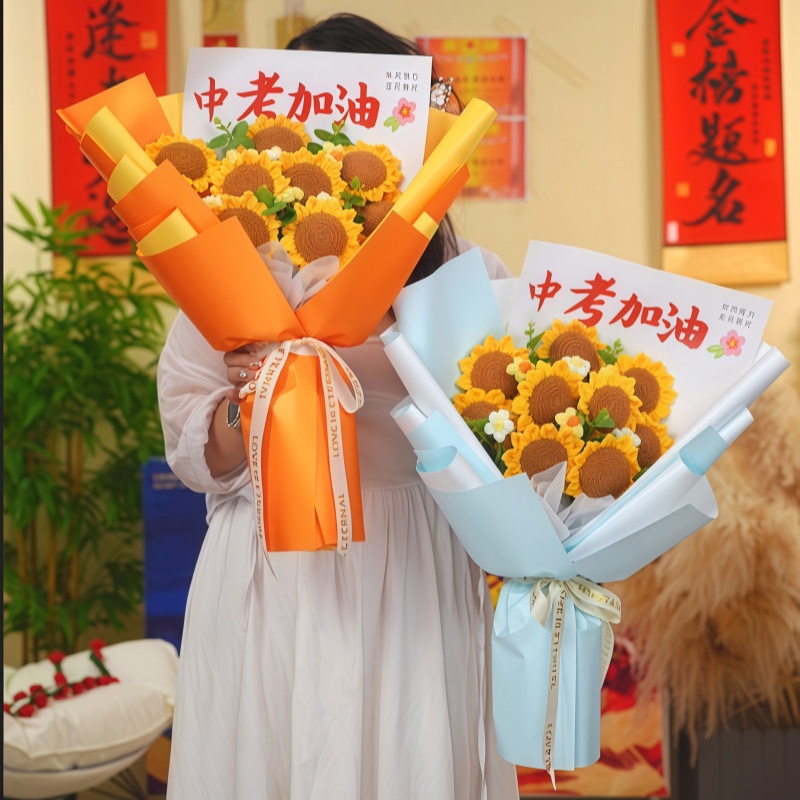 高校受験シーズンの手編み花束完成品、男の子と女の子への誕生日プレゼント、親友やガールフレンドへの卒業シーズンギフト
