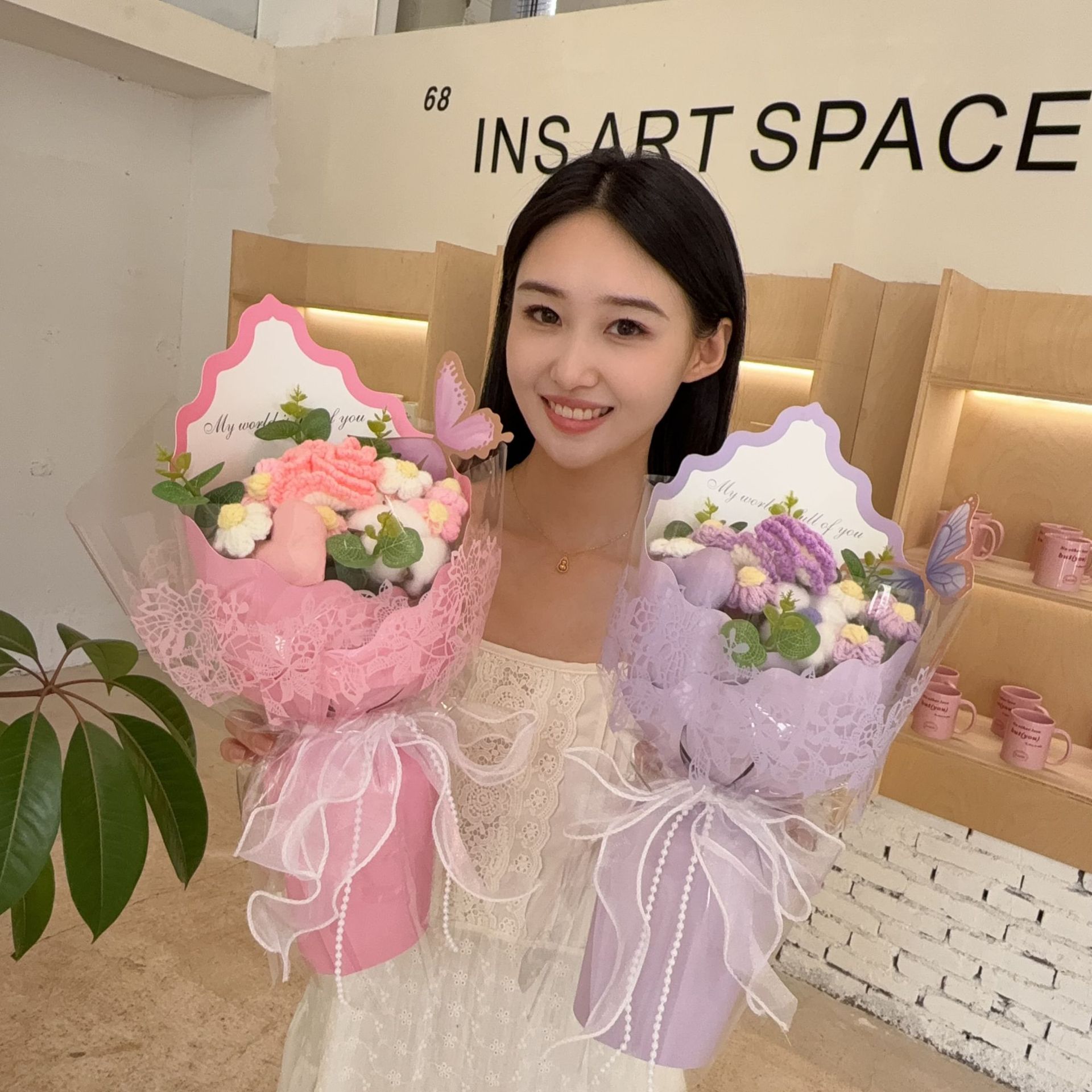 520バレンタインデープレゼント中国風チャイナドレスは完成品の手作り毛糸花束誕生日プレゼントを女の子の親友に贈る