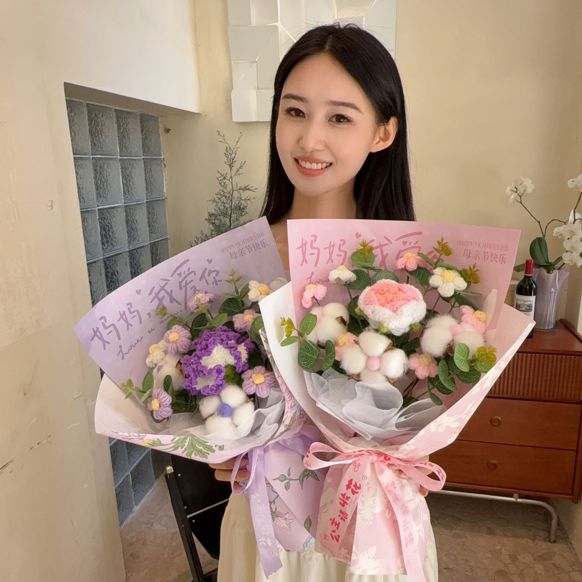 母の日プレゼント完成品毛糸花束手作りニット編みシュークリーム花は母の創造的な贈り物卸売りをする