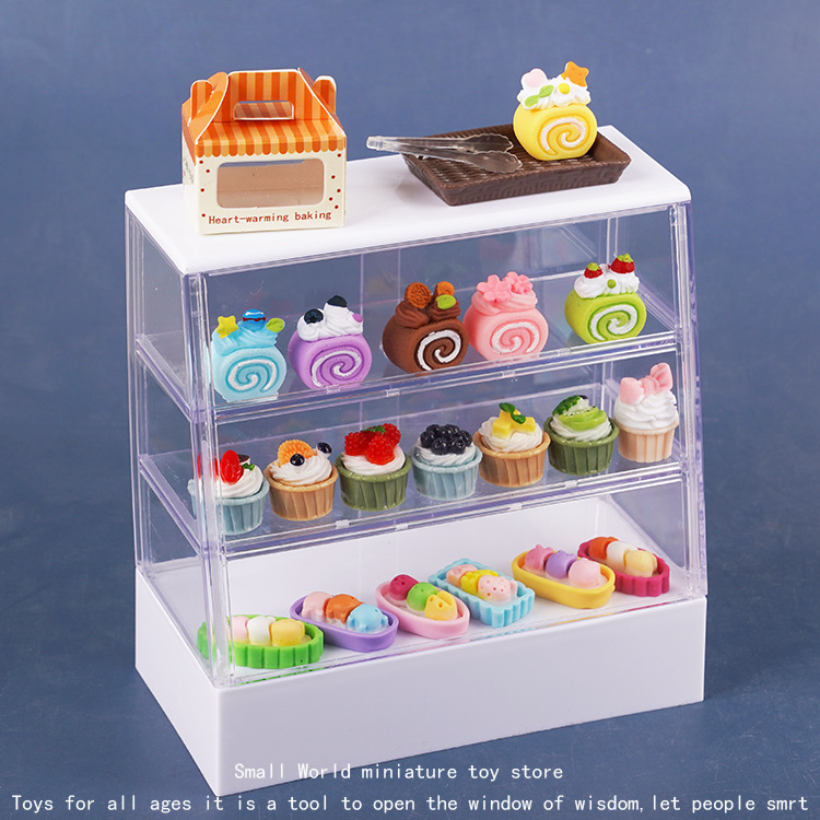 ミニ食べ遊びケーキ棚シミュレーションおまままごとの子供のおもちゃの子供の家のミニチュアのデザートの展示棚の模型の置物