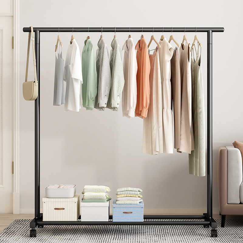 ハンガーが床に落ちた家庭用寝室に服を掛けて折りたたみます。