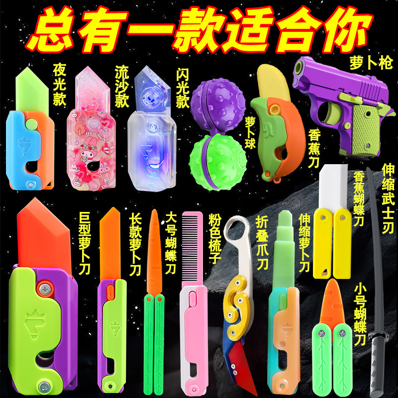 3dプリント重力ロブ刀フルセットミニ家族夜光伸縮剣爪刀玩具