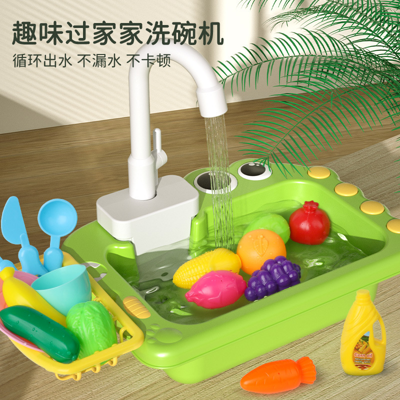 子供の食器洗い機のおもちゃの野菜を洗う池のたらいの蛇口の循環の電動のままごとの男女の子供の誕生日の贈り物