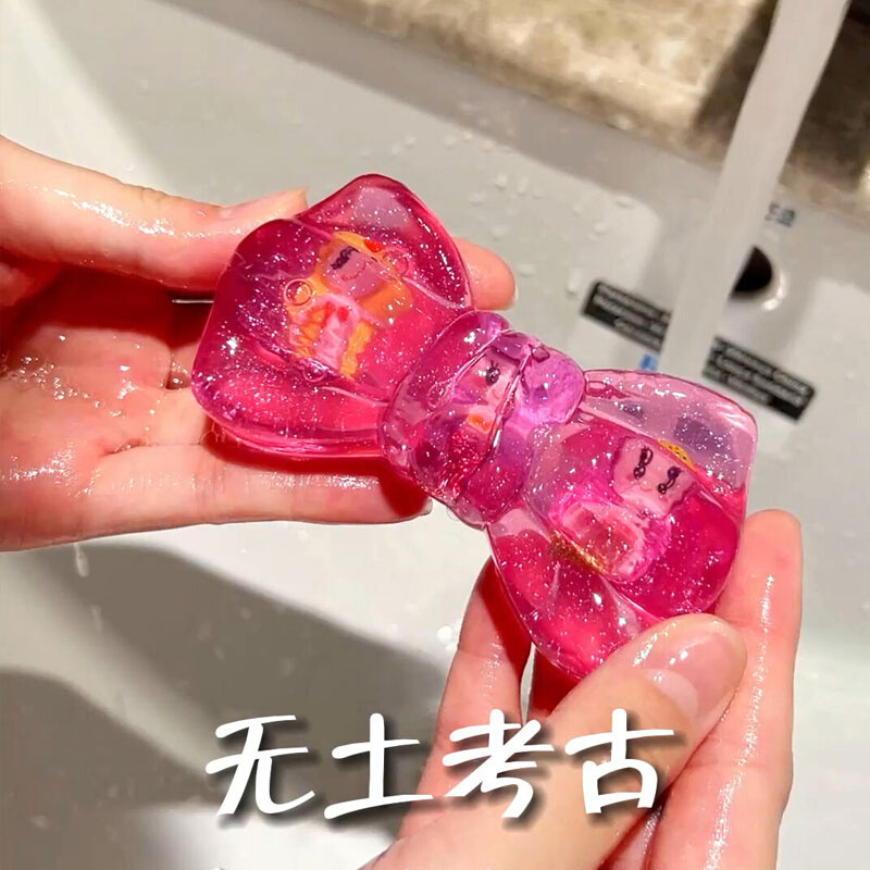 蝶結びの石鹸は宝の考古学を掘って子供のおもちゃを掘り起こします。