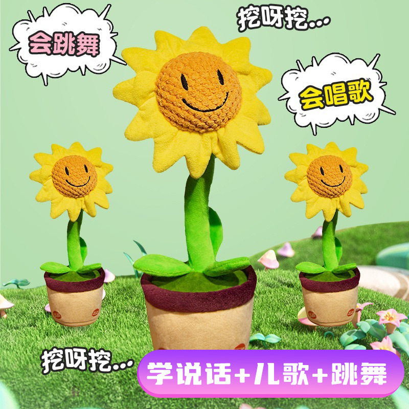 話を習って踊ります。太陽の花のヒマワリを歌って、赤ちゃんの子供のサボテンのおもちゃを掘ってください。