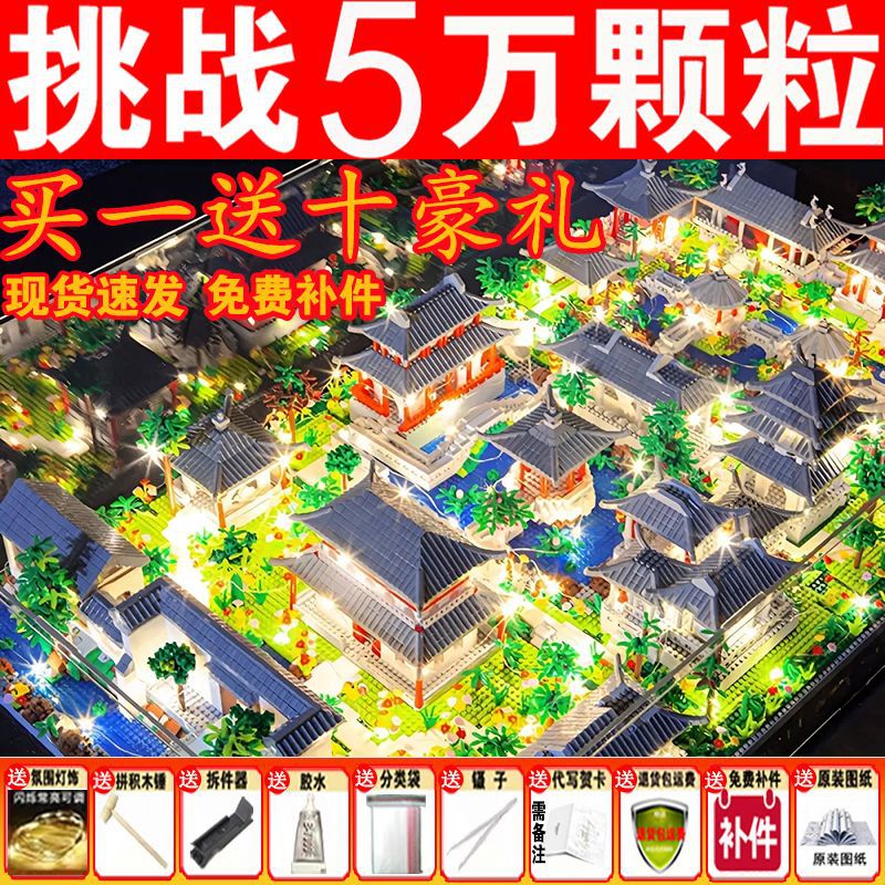 レゴ積み木黄鶴楼四大古楼天安門万里の長城阿房宮蘇州園林の起爆在庫と互換性があります。