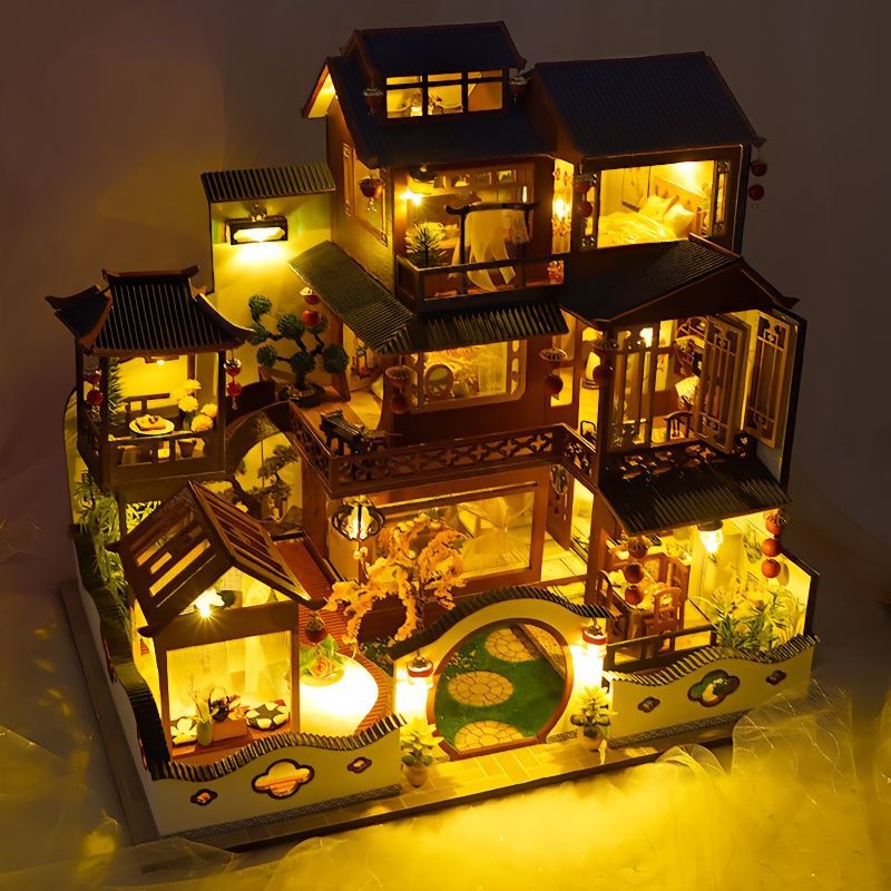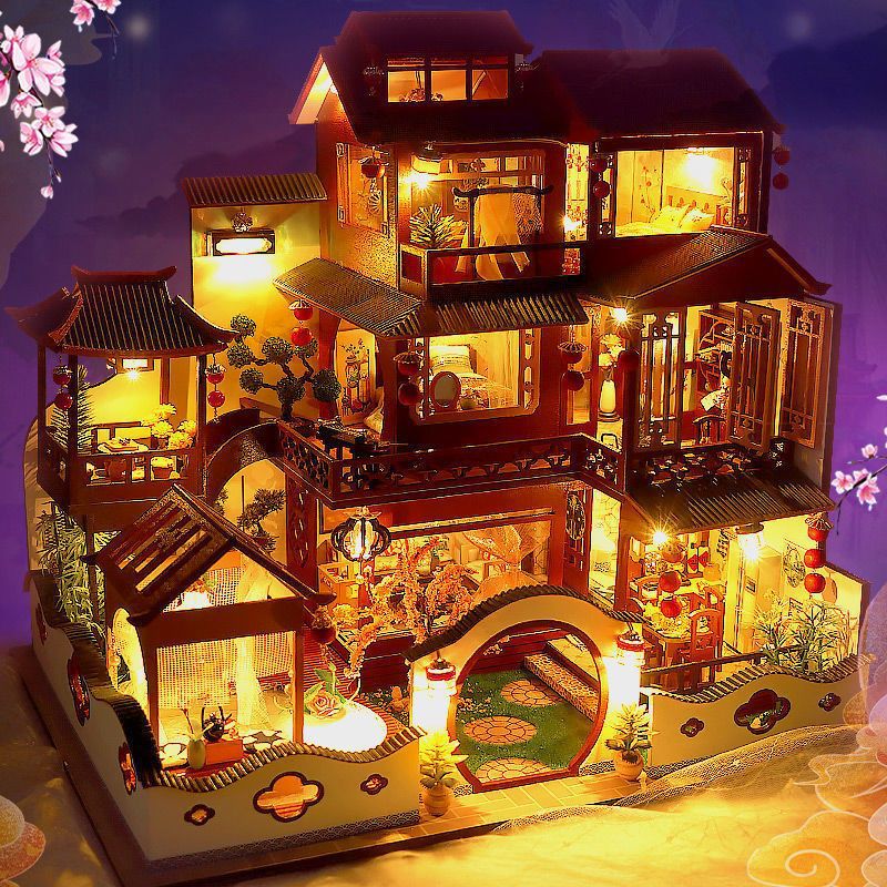 美代diy手作り小屋西渓花間中国風復古建築模型大型別荘木製玩具女
