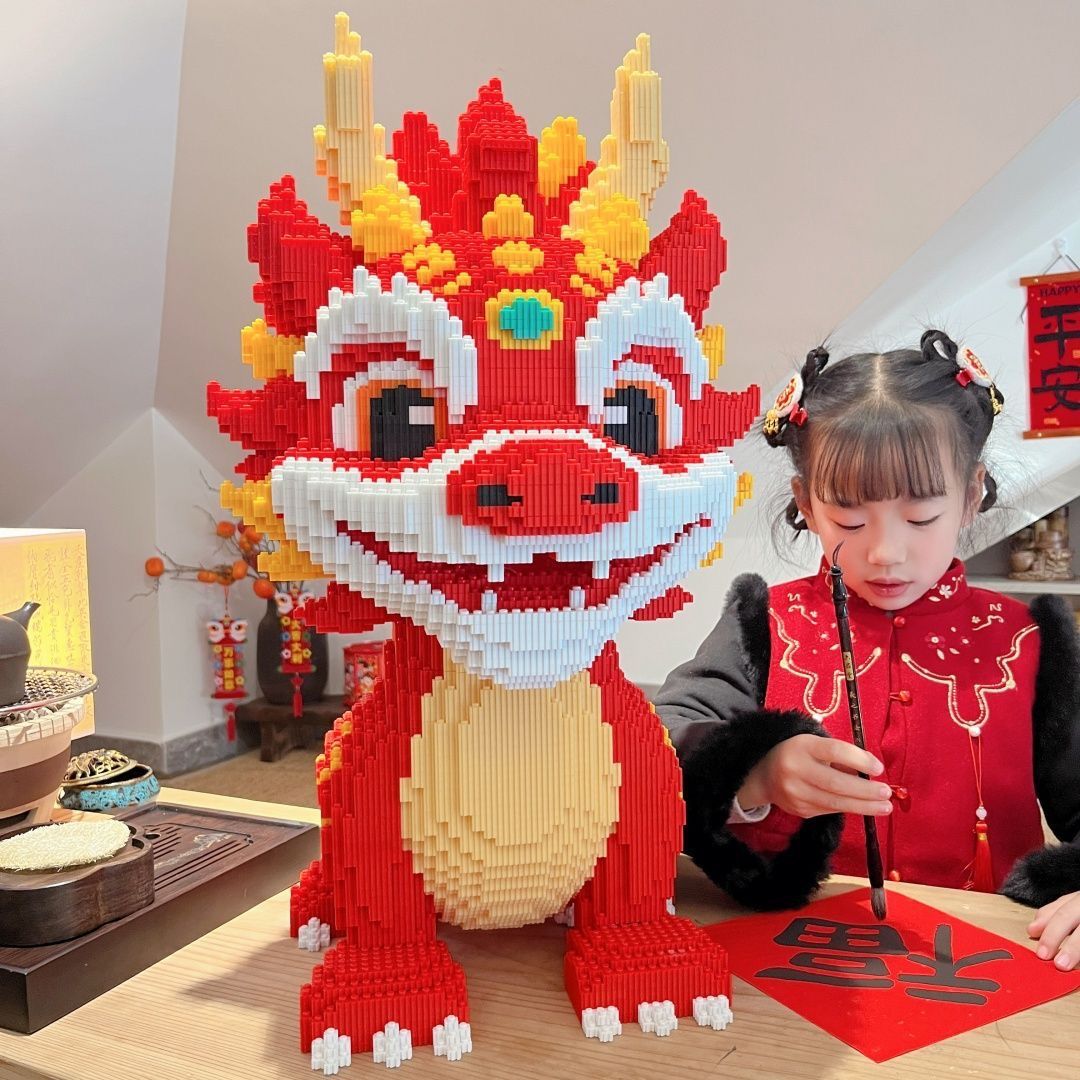 巨大な福竜の赤ちゃんの積み木はおもちゃを詰めてレゴの中国の竜のジグソーパズルの置物の新年の女の子のプレゼントに対応します。