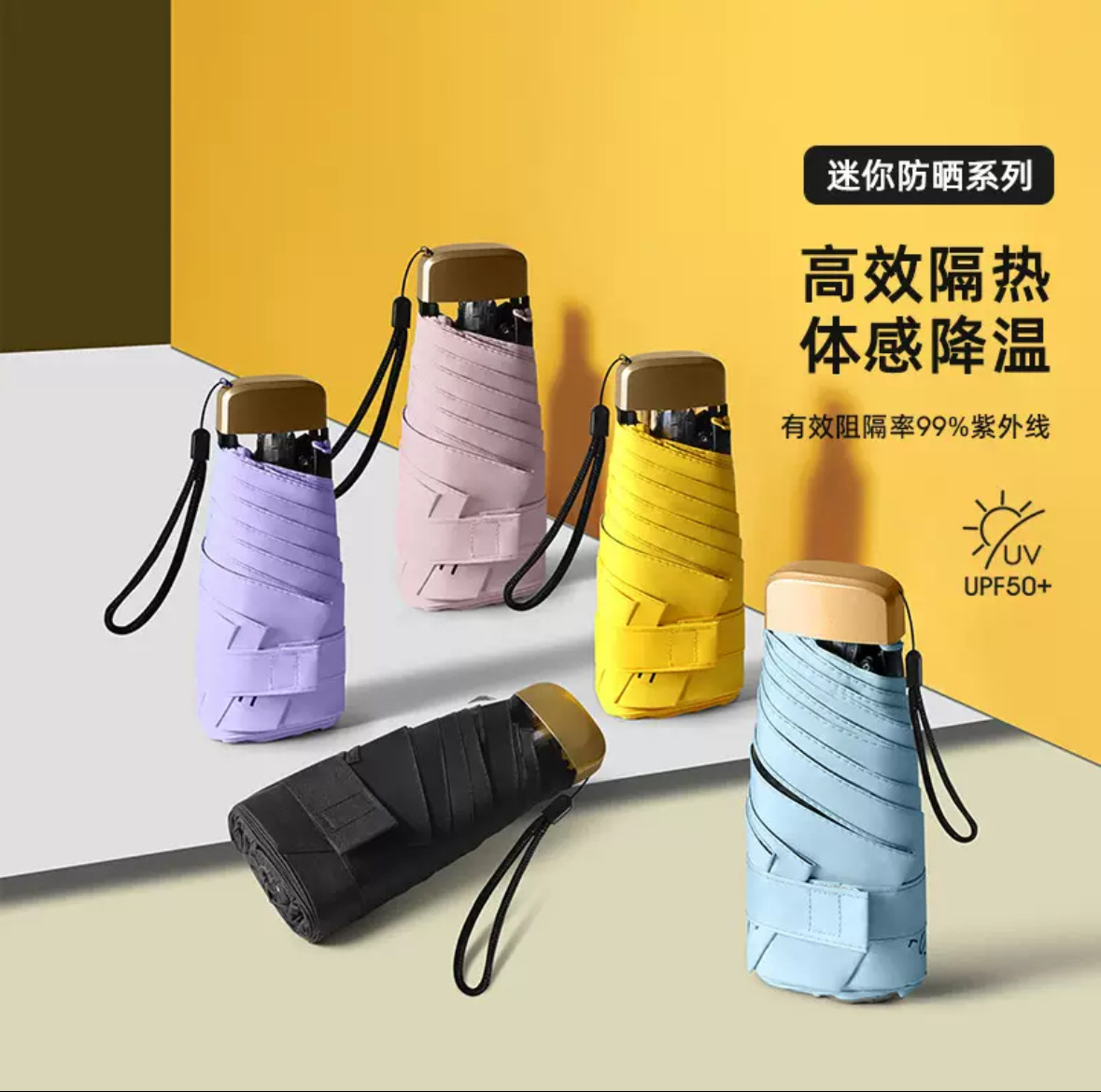 五つ折りコンパクトカプセル傘日焼け止め紫外線対策日除け日傘晴雨両用高級感ミニ携帯傘