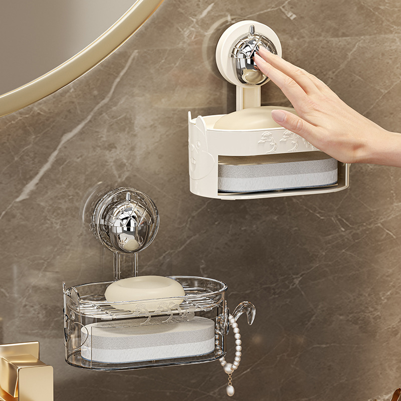 パンチフリーのハイエンドバスルーム壁掛け収納ラックバスルーム吸盤ソープディッシュ排水ソープディッシュ二層家庭用