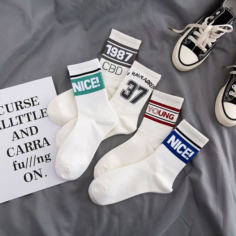白い靴下ins女性韓国版中筒日系百合学院風アルファベットネット赤学生長筒女性靴下春秋