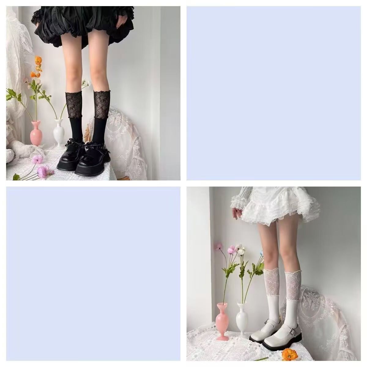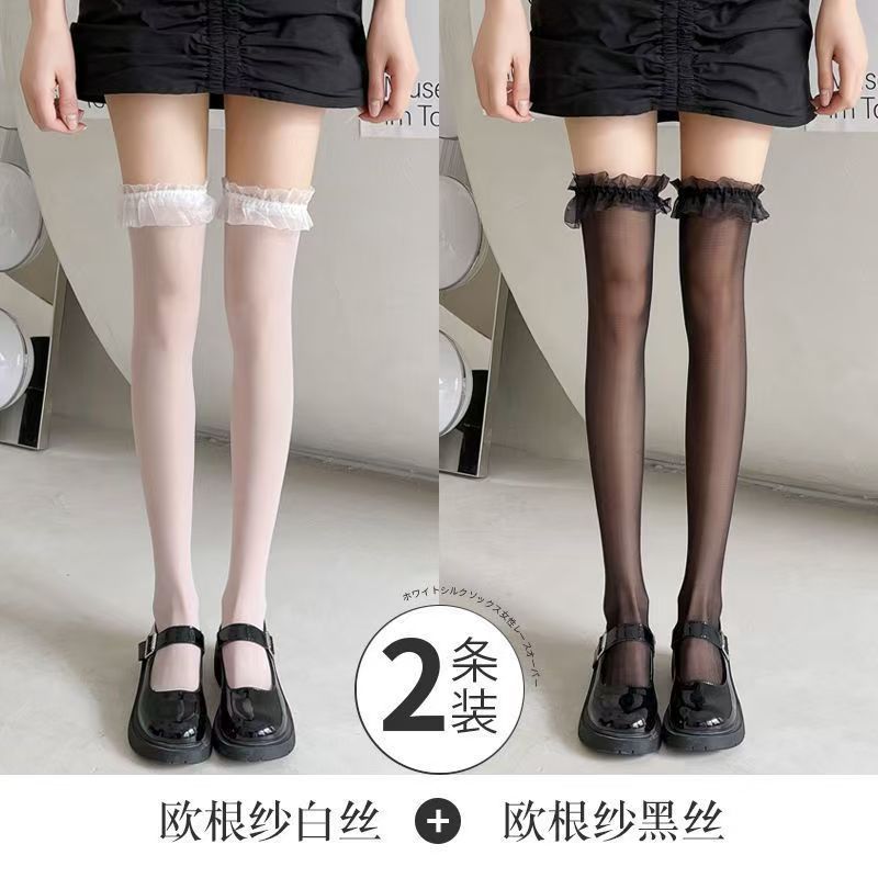 高筒漁網靴下甘美セクシーストッキング女性黒白レース膝靴下夏超薄全透明jk靴下