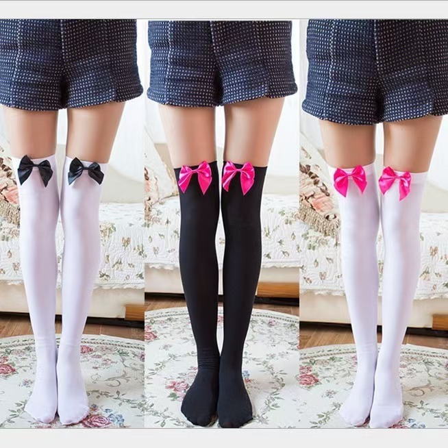 ビロード蝶結び欲風過膝靴下ホワイトバレエ風太ももソックス日系jkストッキング夏