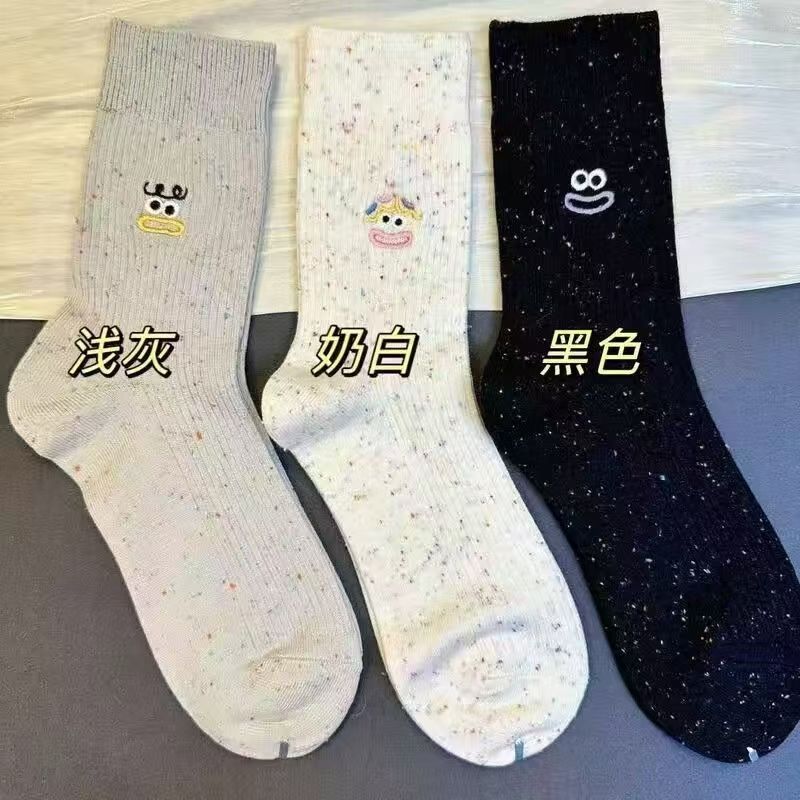 韓国版ins男女中筒靴下ヒューマン雪山刺繍百合潮靴下カップルスポーツ靴下ストッキング