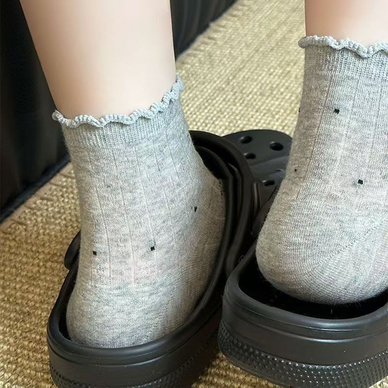 木耳ソリッドカラーメッシュ中空ソックスレディースミッドカーフソックスイントレンディな夏薄いバレエスタイルストッキングレディースソックス