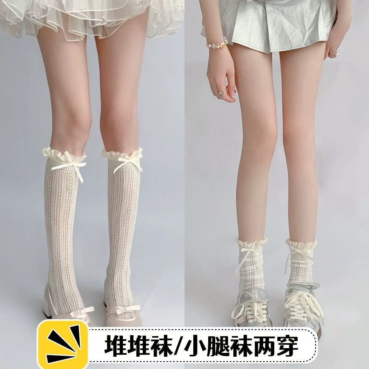 春夏の薄手のiu風の蝶結びの靴下の女性の中筒のinsバレエの風の靴下の日本の甘い防臭の山の靴下