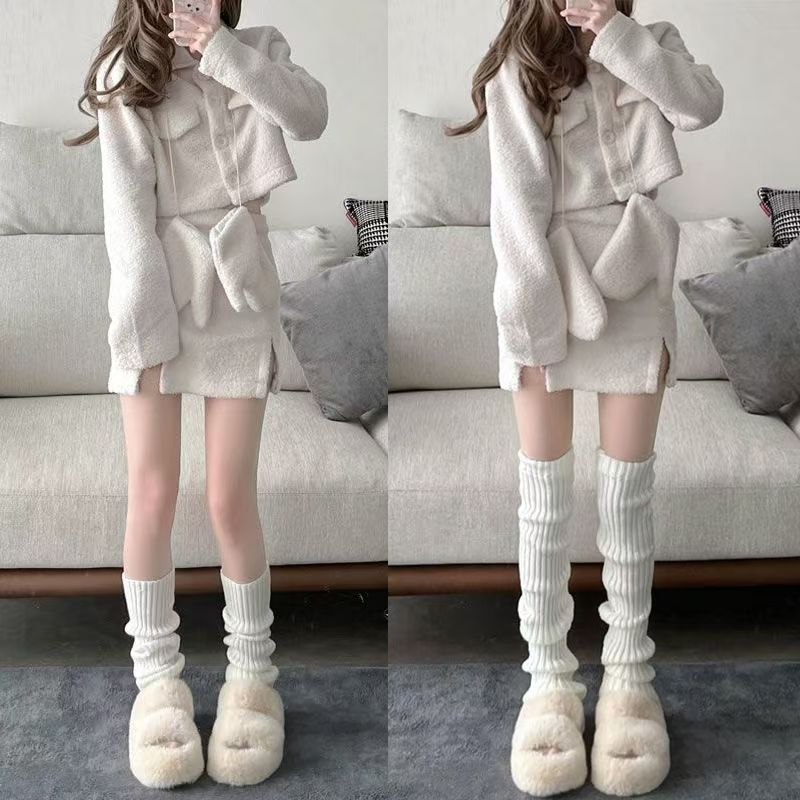 靴下の女性JK靴下カバーLolitaニットの下腿靴下カバー日本の純色の縞が痩せている脚カバー諸及び靴下