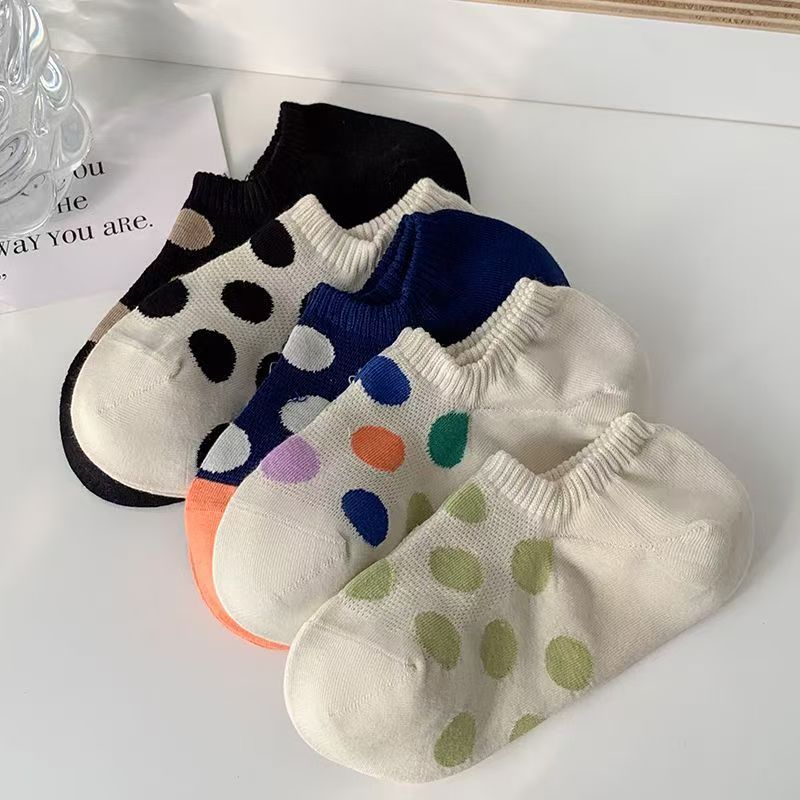 春夏の女性用ドットソックス、薄い中空メッシュ通気性ローカット浅い口の見えないソックス、滑り止め、脱落防止ボートソックス