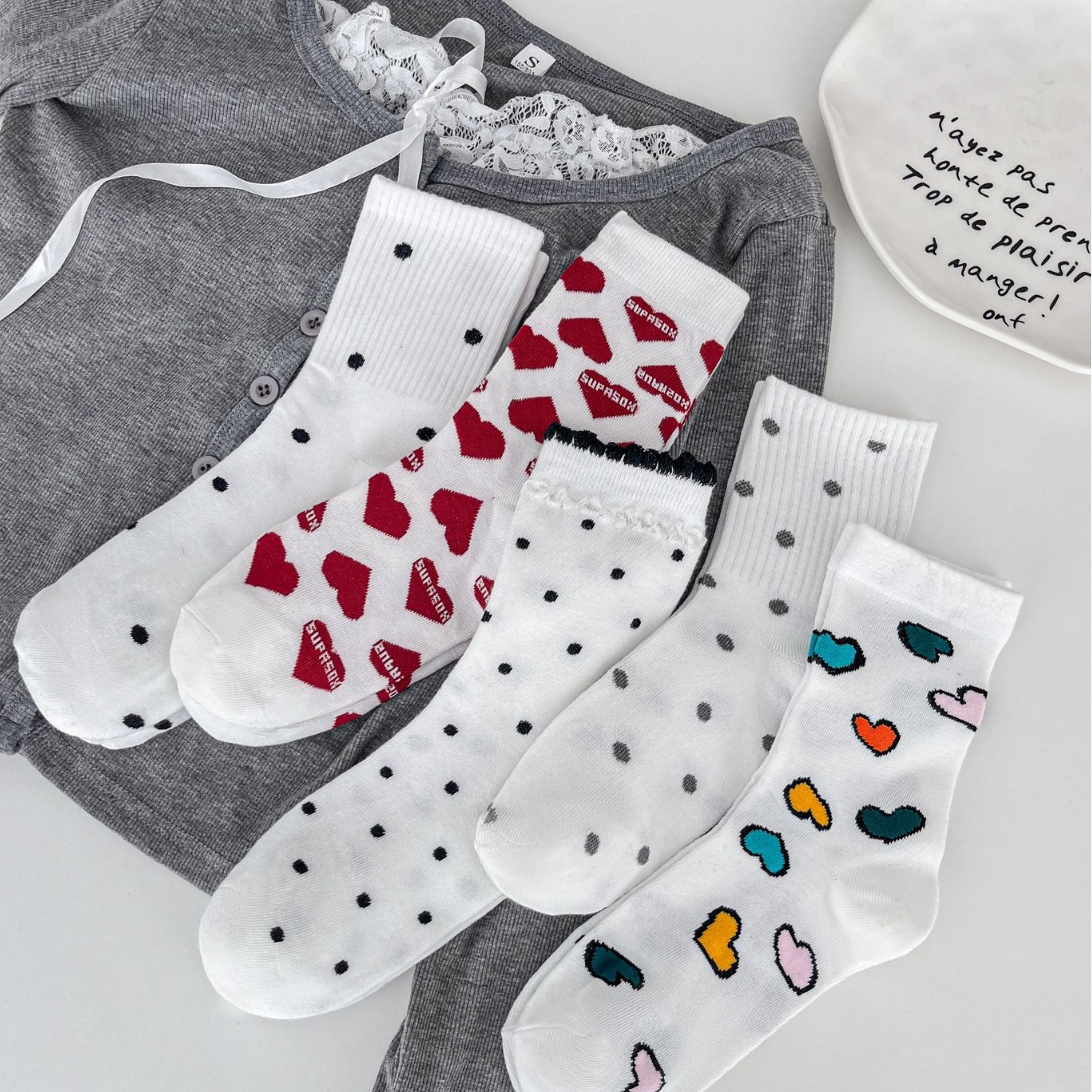 春の新作日本と韓国のラブミッドカーフソックス、女性用スポーツレジャーソックス、女子学生パイルソックス、卸売クロスボーダー特別品