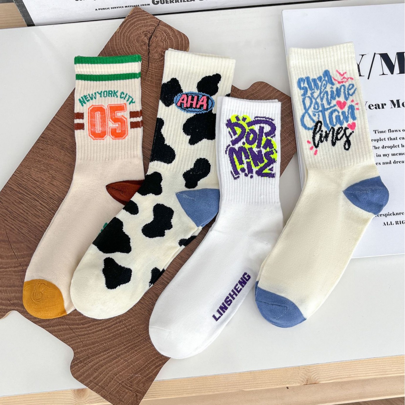 白い靴下の女性の中筒ins潮百合春夏高颜値日系ソックス学生漫画スポーツソックス