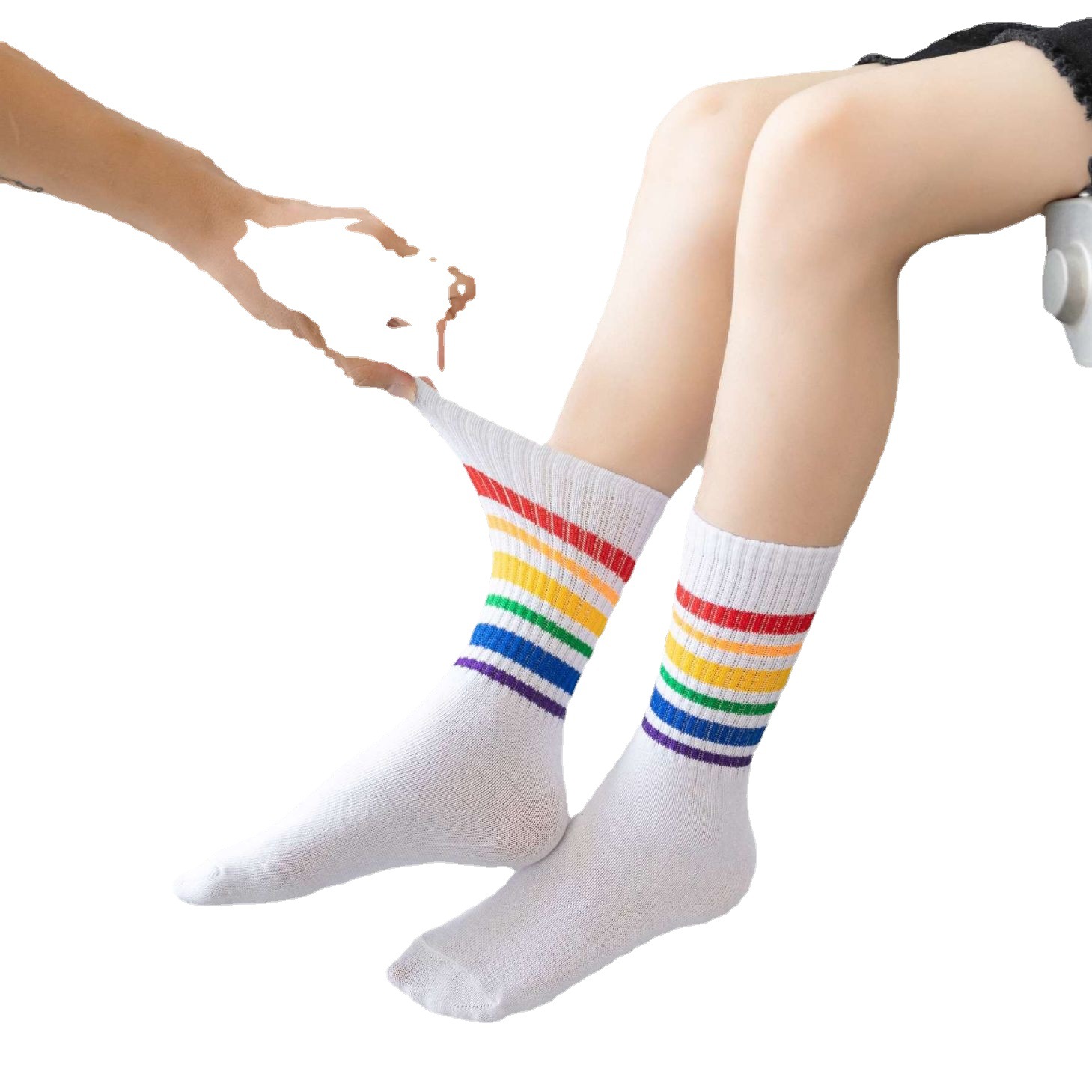 子供靴下学生男の子女の子パフォーマンス春秋スポーツソックス小、中、大子供韓国風レインボーミッドチューブソックス薄手