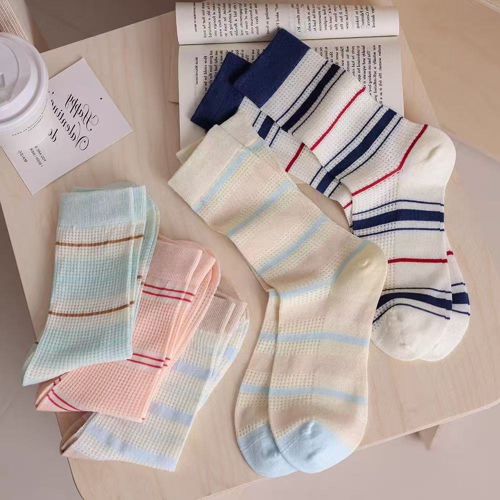 【メーカー直販】秋冬ソックス レディース スポット卸売 ストライプ おしゃれ 吸汗性 カジュアル ミッドカーフソックス