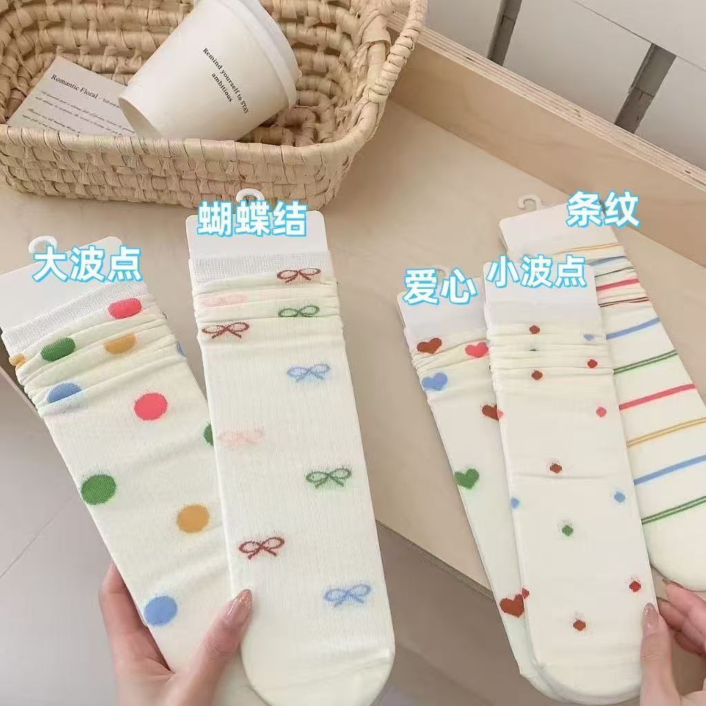 夏のメッシュストライプ動物靴下薄い波点靴下子供綿質かわいい中筒靴下ins甘いストッキング