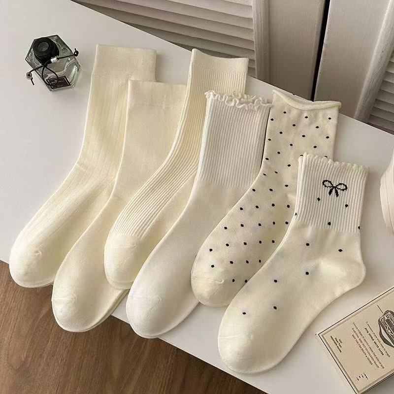 インソックス カールレディース ミッドチューブ 薄手 かわいい 水玉 春秋 ロングソックス 日本の学生パイルソックス 春秋