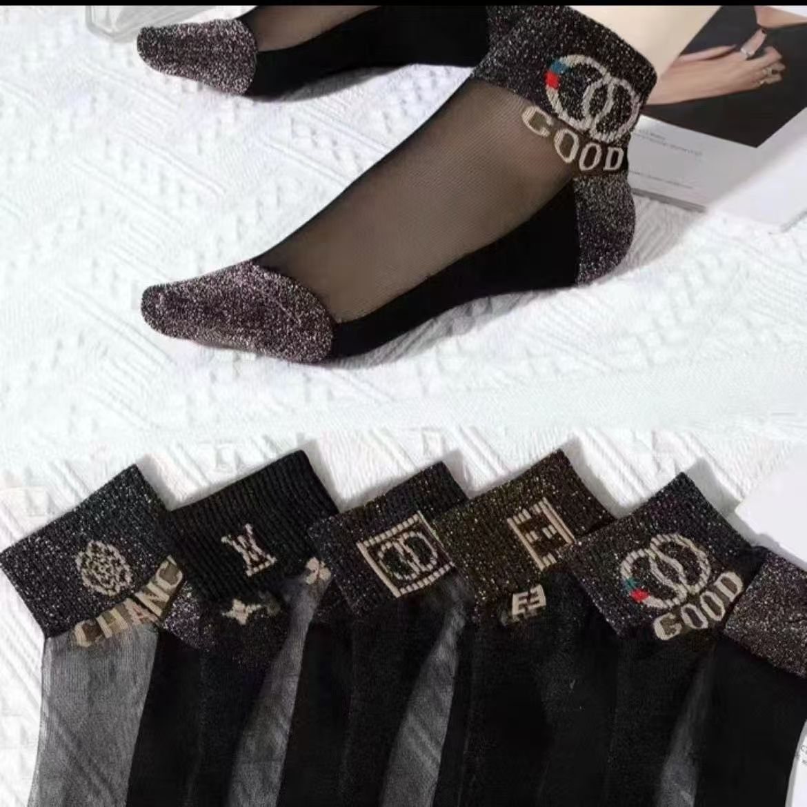 新しい靴下の女性の短い筒の靴下の白黒の通気性の百合のかわいい韓国版の水晶のストッキングのネットの赤いinsの潮の百合