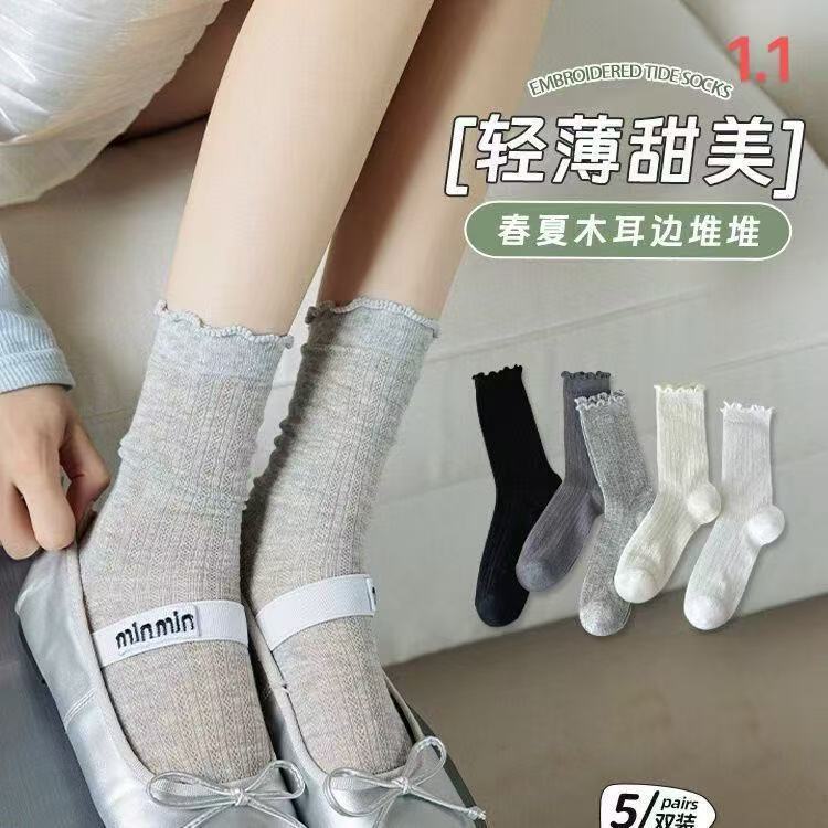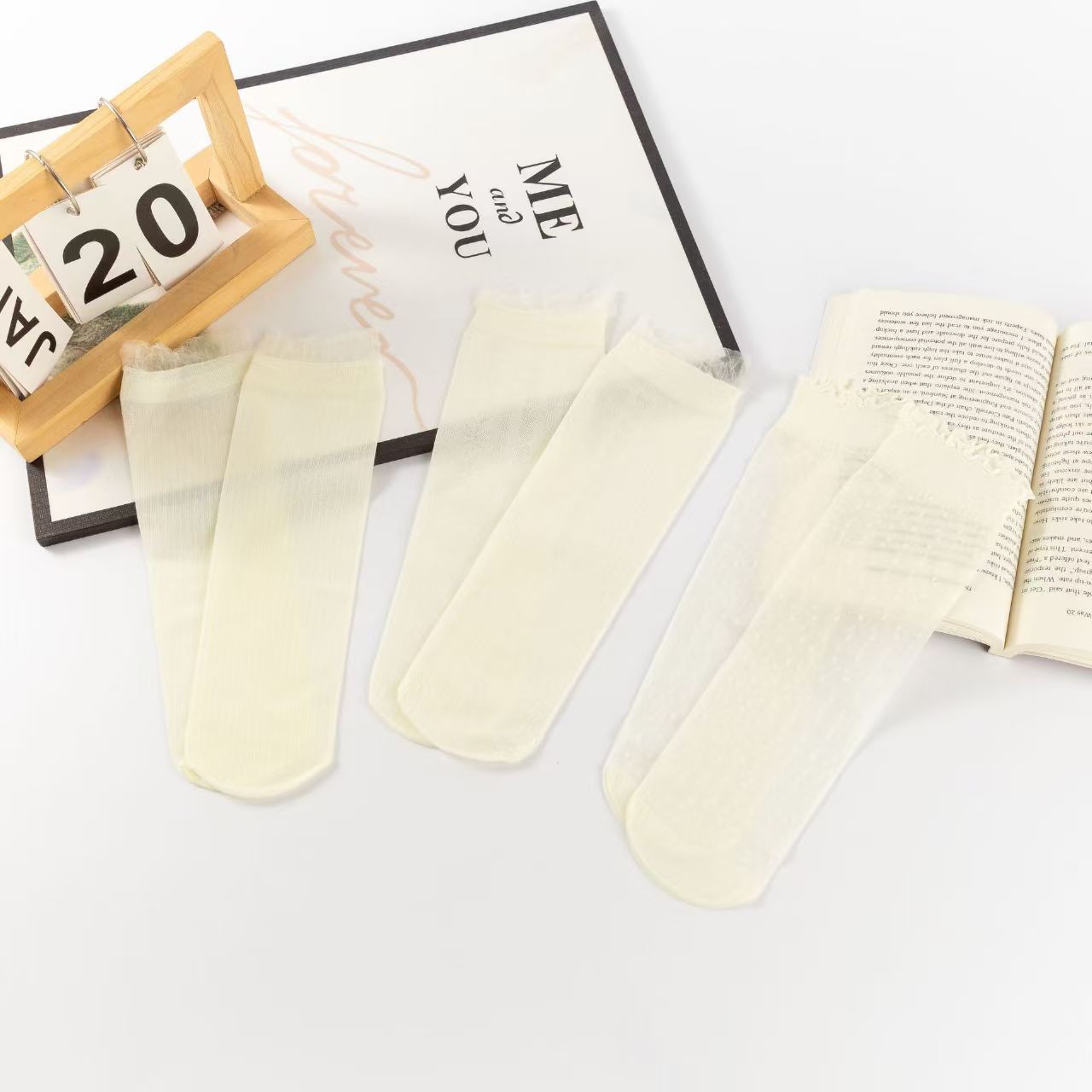 レースソックス中筒春夏レディース薄い通気メッシュiu風ロリータ靴下白スタッキングソックス