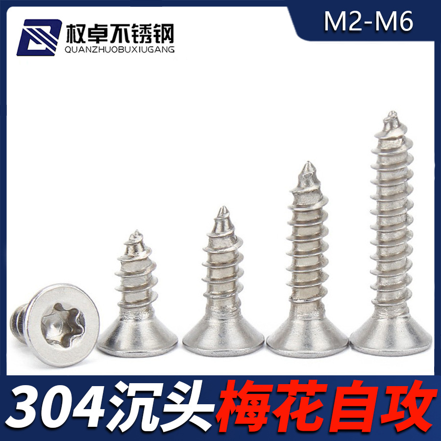 304ステンレス沈頭梅防犯タッピングねじM2M2.6M3M3.5M4-M6平頭星形タッピング釘